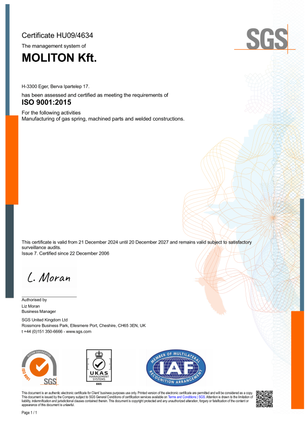 A MOLITON Kft. által gyártott gázrugók célszerűen alkalmazhatók rugójellegű gépelemként: személygépkocsik, buszok, teherjárművek, traktorok, megmunkálógépek, épületek, bútorok, stb. nyílászáróinak, üléseinek vagy egyéb részegységeinek mozgatására, kitámasztására.