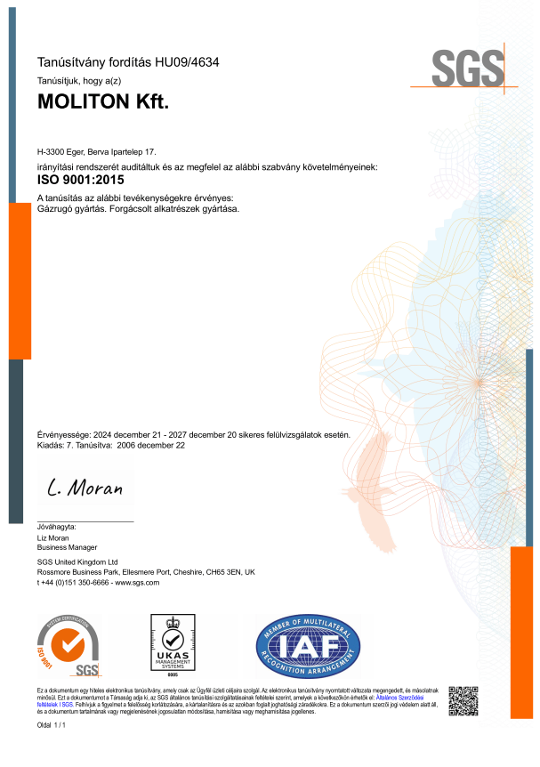 Céljaink megvalósulásának és vevőink elégedettségének elnyeréséhez fontos eszköznek tekintjük az MSZ EN ISO 9001 szabványnak megfelelő minőségirányítási rendszer bevezetését, működtetését és folyamatos fejlesztését vállalatunk minden tevékenységére. Ezt a gyakorlatot 2006 óta fenntartjuk.