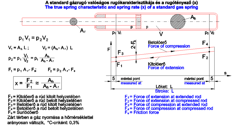 Az elméleti rugóerő az F = Ar p képlettel számítható, ahol: